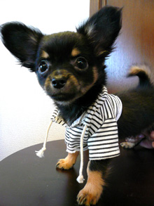 コウタロウの服を作ってました。3着ぐらい(え)子犬の服は生地の量は少ないのに